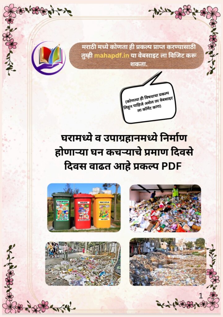घरामध्ये व उपाग्रहानमध्ये निर्माण होणाऱ्या घन कचऱ्याचे प्रमाण दिवसेदिवस वाढत आहे प्रकल्प PDF अनुक्रमणिका