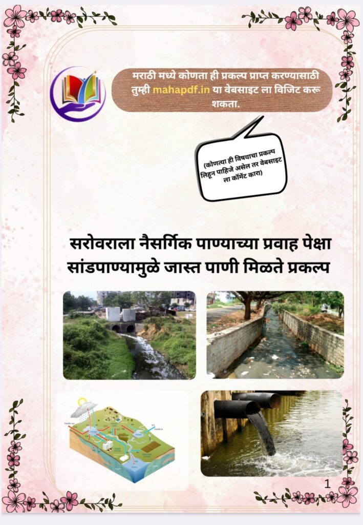 सरोवराला नैसर्गिक पाण्याच्या प्रवाह पेक्षा सांडपाण्यामुळे जास्त पाणी मिळते प्रकल्प pdf मध्ये खाली दिलेल्या सर्व घटका वर सविस्तर प्रकल्प लिहिण्यात आला आहे.